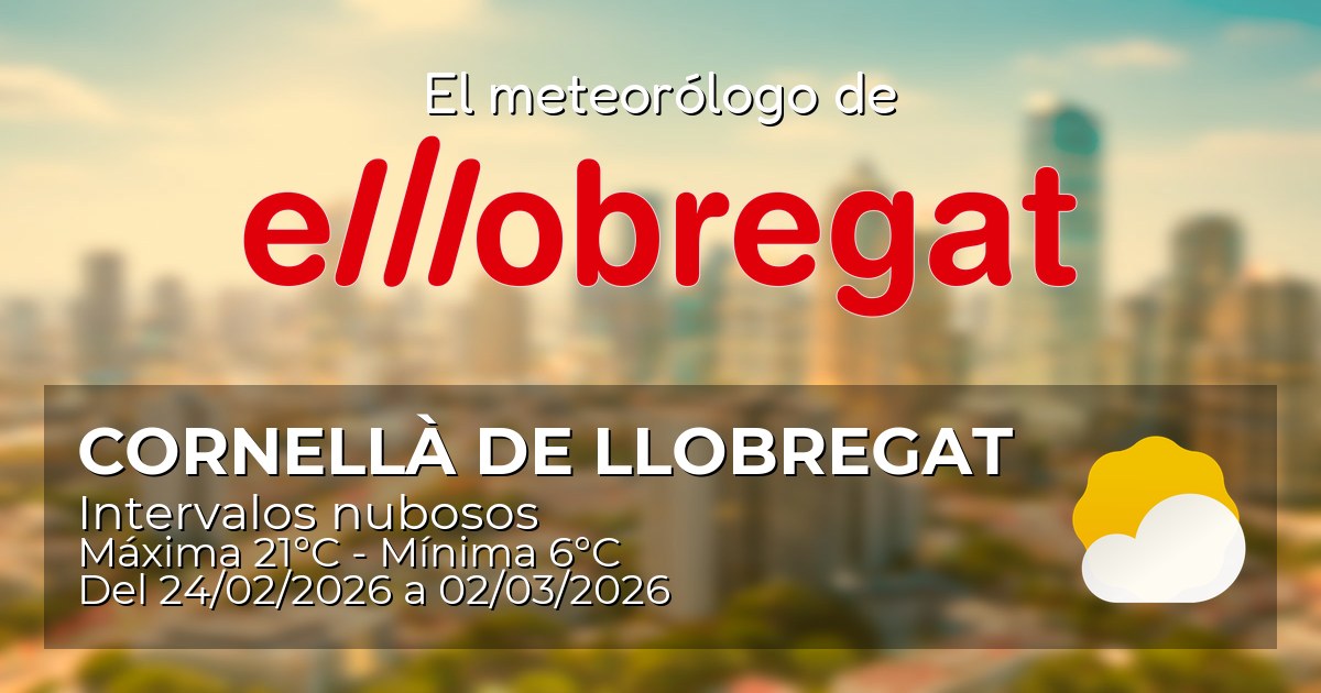Esta semana en Cornellà de Llobregat, el clima se presenta mayormente estable, con temperaturas agradables que rondan entre los 6 y 21 grados. Aunque no se esperan lluvias significativas, la presencia de nubes altas y algunos intervalos nubosos marcarán el paisaje del cielo. Prepárate para disfrutar de días templados, ideales para salir a pasear o realizar actividades al aire libre.