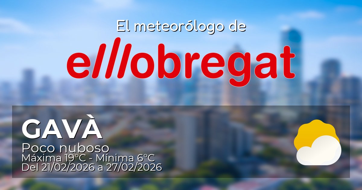 La semana del 21 al 27 de febrero en Gavà se presenta estable y mayormente soleada. Las temperaturas oscilarán entre los 6 y 19 grados, siendo el día más cálido el 22. Sin probabilidad de lluvia, disfrutarás de cielos despejados y poco nubosos. Ideal para actividades al aire libre.