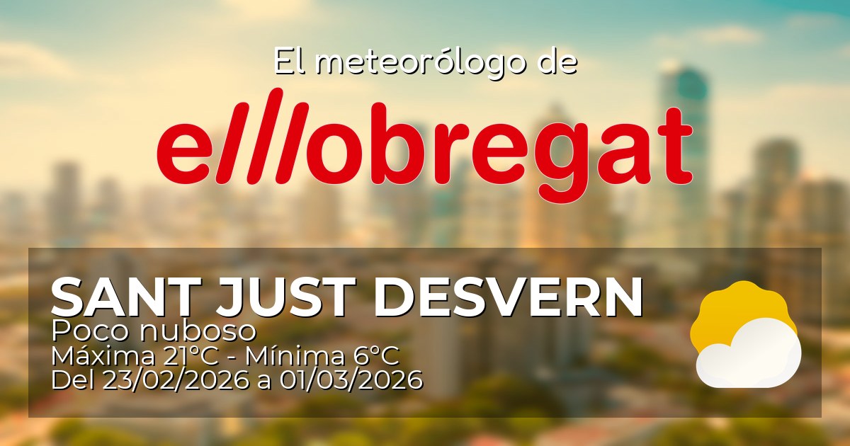 La semana que se avecina en Sant Just Desvern promete un clima mayormente estable, con temperaturas agradables y algunas nubes que harán su aparición. Aunque la lluvia será escasa, hay un día que podría traer alguna sorpresa. Prepárate para disfrutar de una mezcla de sol y nubes, ideal para salir a hacer actividades al aire libre.