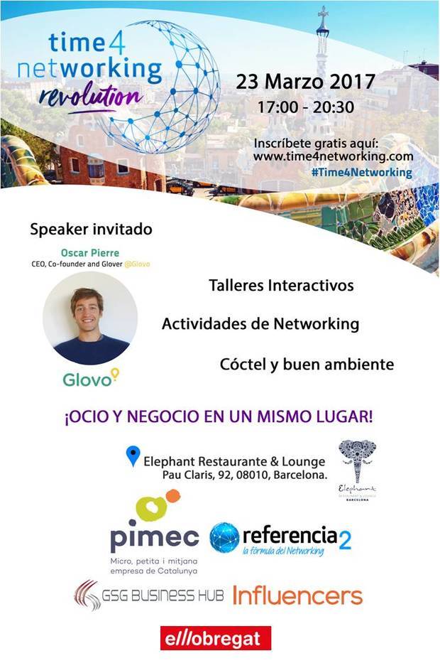 Referencia2, empresa especialista en organizar encuentros de networking, y PIMEC, la patronal empresarial más grande de la región, organizan Time4Networking Revolution Barcelona | Óscar Pierre, CEO y Co-fundador de Glovo, será uno de los principales protagonistas del evento