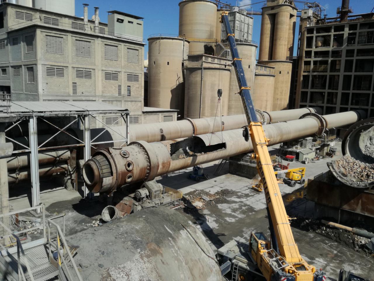 Hace unos días se estaba acometiendo el desmantelamiento del horno número 5. La empresa, que descartó la voladura como método de desmontaje y apostó por el troceado paso a paso, está haciendo servir una cizalladora de precisión y anuncia que los trabajos se alargarán previsiblemente hasta la primavera del año que viene.