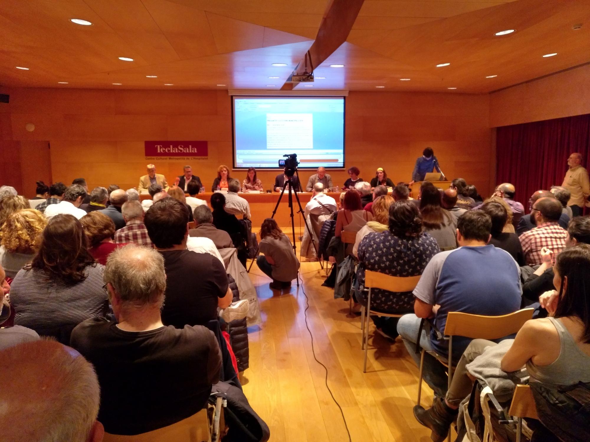 La sala de actos de la Tecla Sala, abarrotada durante el debate al que no asistió Marín. (Foto: El Llobregat)