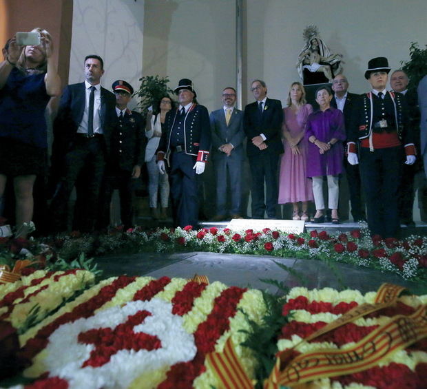 Pese a ser una tradición centenaria cada 11 de septiembre, la ofrenda floral en la tumba de Rafael Casanova, en la iglesia de Sant Baldiri de Sant Boi, ha quedado desdibujada en los últimos años, eclipsada por las mareas humanas convocadas cada Diada por la Assemblea Nacional Catalana (ANC) y Òmnium. Discreta cobertura en los grandes medios, más interesados en mostrar quién era insultado ante el monumento a Casanova en Barcelona o cuántas personas llevaban a cabo la performance de turno. Este año no es una excepción, y las entidades soberanistas ultiman los detalles de la manifestación de este año, en la que esperan congregar a un millón de personas en plaza España y alrededores bajo el lema ‘Objetivo independencia’, aunque según los datos facilitados al cierre de esta edición apenas había 75.000 inscritos, los datos más bajos, a estas alturas, de los últimos años. En rueda de prensa, la presidenta de la ANC, Elisenda Paluzie, reconoció el pinchazo en las inscripciones pero le quitó hierro, recordando que muchos manifestantes no se inscriben y asisten directamente a la movilización de la Diada.