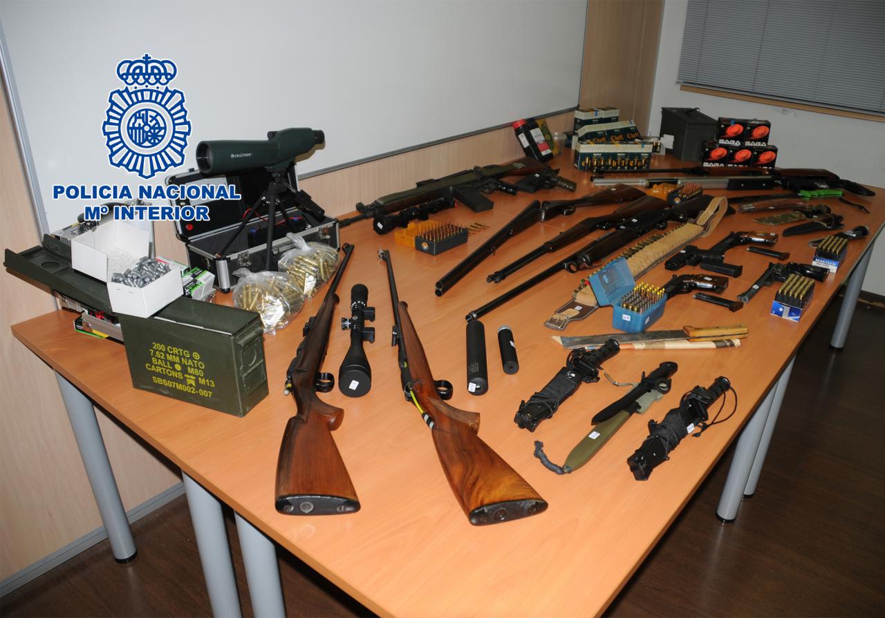 La Policía Nacional ha efectuado una detención y ha incautado ocho armas cortas y otras ocho largas, además de dispositivos silenciadores, visores telescópicos y otras piezas para transformar las armas semiautomáticas en automáticas.