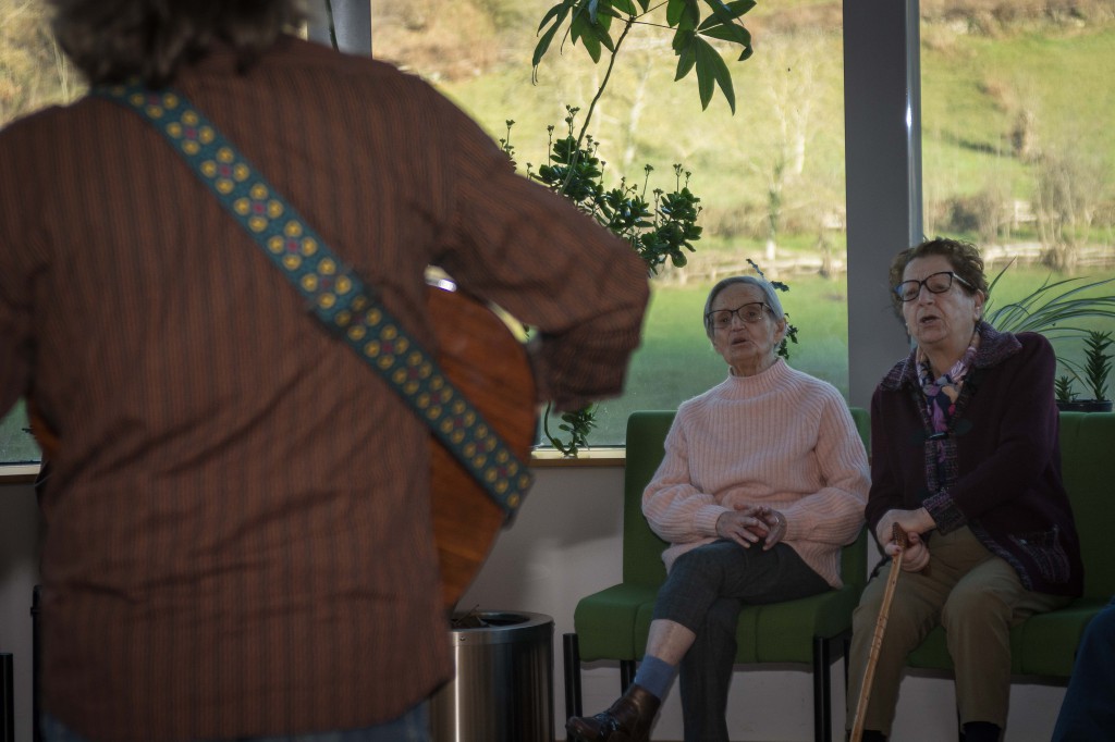 “Lo importante de lo que haces es que cantas con nosotros y no para nosotros. Vienes a compartir. Cito este ejemplo porque es ahora cuando están surgiendo muchos proyectos que aparecen y desaparecen de las vidas de las personas mayores y que no tienen en cuenta su historia de vida”, añade el cantante, que a través de su voz y su destreza con la guitarra evoca a la remota juventud y a unas emociones, en algunos casos olvidadas, de los mayores que le escuchan.