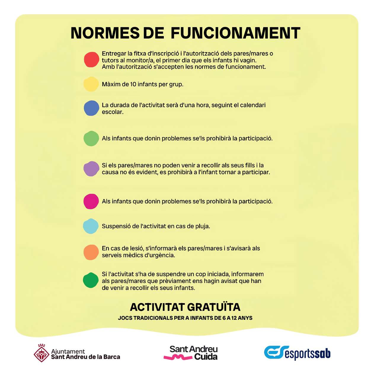 Las actividades estarán supervisadas por un monitor de tiempo libre en diferentes espacios públicos de la ciudad. Los participantes podrán disfrutar de juegos tradicionales como la xarranca, el toque y para, así como juegos con pelota, entre otros.