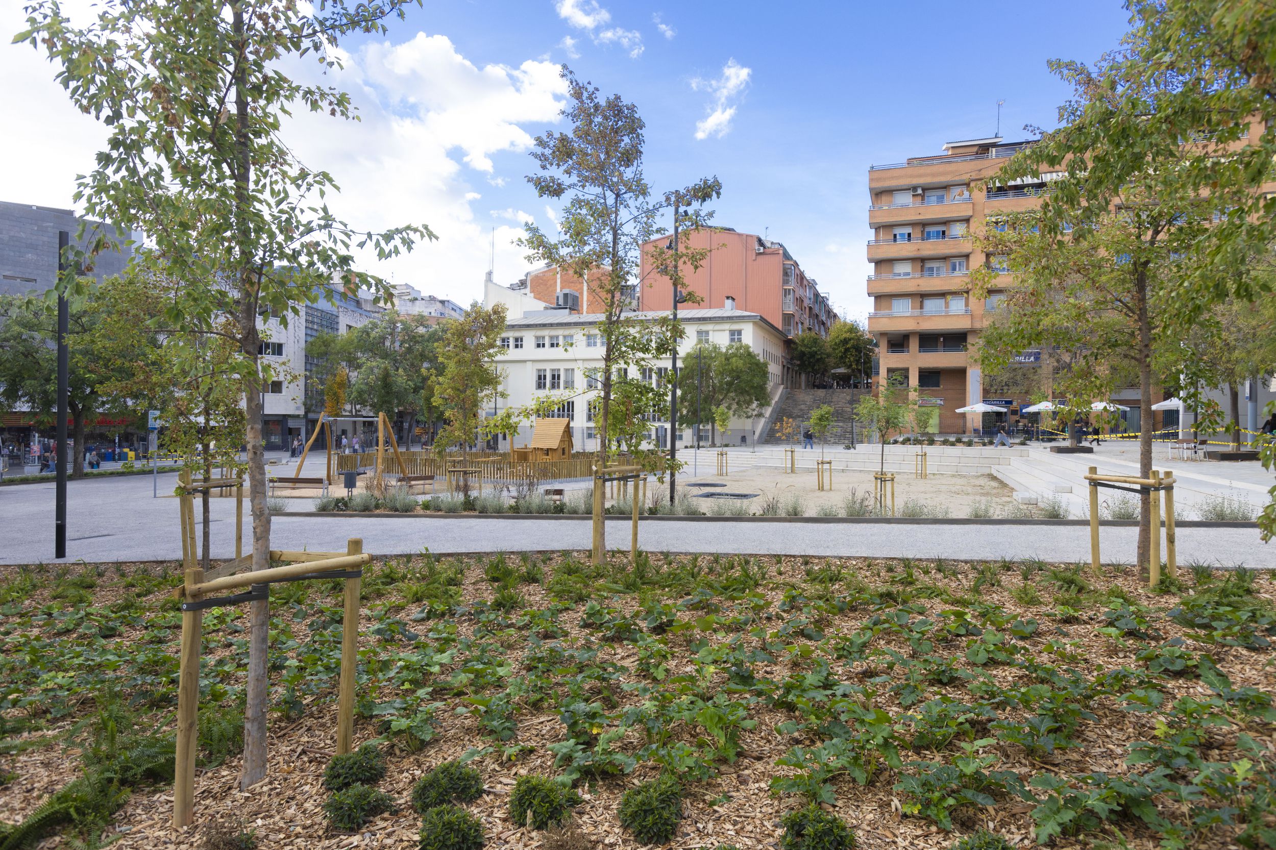 La plaza de la Bòbila, una nueva isla verde y centro neurálgico entre L’Hospitalet y Esplugues