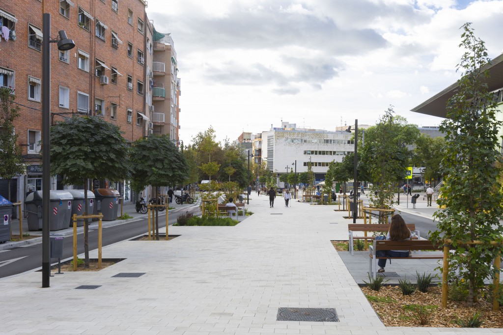 La urbanización del tramo de la avenida —Severo Ochoa en L’Hospitalet y del Torrent en Esplugues— elimina el desnivel histórico y la convierte en una rambla con mejor conexión transversal y protagonismo para el peatón: