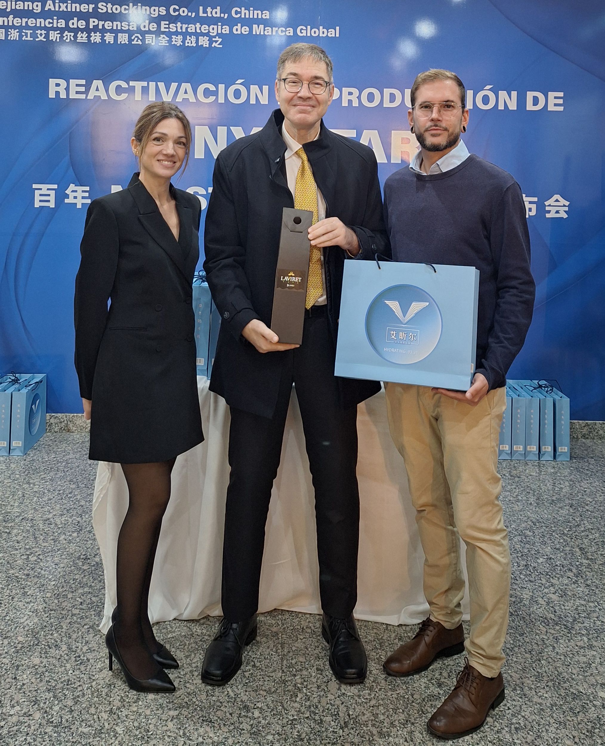 La siguiente personalidad en dirigirse a los presentes fue la fundadora y presidenta del grupo Zhejiang Aixiner Stockings Co., Ltd., Jiang Yuanping. Su discurso fue muy emotivo, compartiendo con nosotros sus recuerdos de la primera vez que visitó Nylstar. Nos habló de la tristeza que sintió cuando vio que la maquinaria de la fábrica era desmantelada y que, en este nuevo comienzo esperan aunar la experiencia del trabajo artesanal de Nylstar con la alta tecnología que ellos están en condiciones de aportar, con el objetivo estratégico de crear un punto de referencia mundial en la tecnología de hilos de punto y de crear valor social en forma de nuevos puestos de trabajo. Puso de manifiesto su compromiso con la preservación y revalorización de un legado centenario, para brillar en una nueva era.