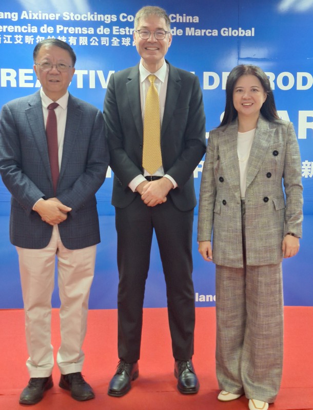 La parte formal de la conferencia de prensa se cerró con unas palabras de la presentadora, aludiendo a la fuerza de la tecnología como motor de desarrollo y a la responsabilidad empresarial para mantener e incrementar los puestos de trabajo. Dio paso, entonces, a un desfile de medias comerciales, con un conjunto de modelos mostrando los productos de Zhejiang Aixiner Stockings Co., Ltd.