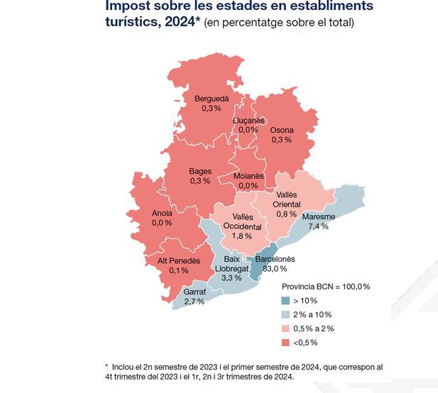 El turismo fue, sin duda, la estrella del año. La comarca recaudó más de 2,1 millones de euros en la tasa turística, un 16 % más que en 2023, y el número de viajeros alojados creció un 11,2 %. Este aumento coloca al Baix Llobregat como líder provincial en crecimiento de visitantes, superando a otras comarcas con mayor tradición turística. Comparando con los datos previos a la pandemia (2019), la comarca ha experimentado un notable repunte, situándose junto al Maresme como las que más incremento han registrado en viajeros y pernoctaciones (+12,5 % y +12,1 %, respectivamente).