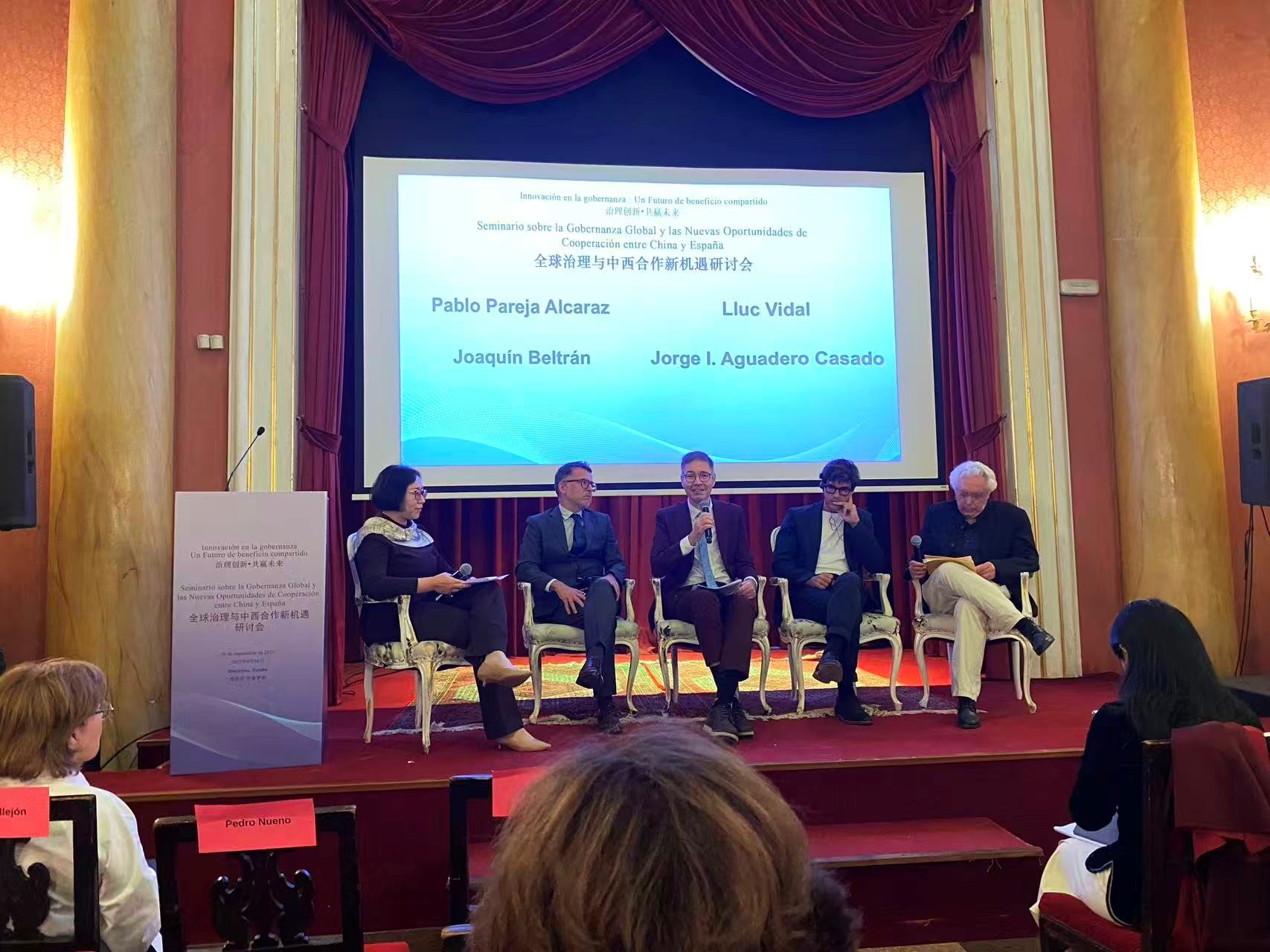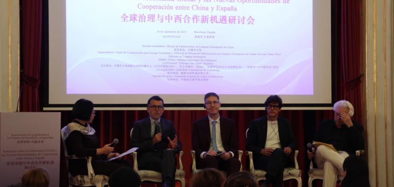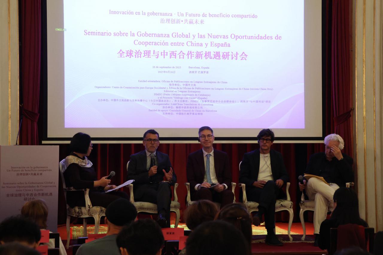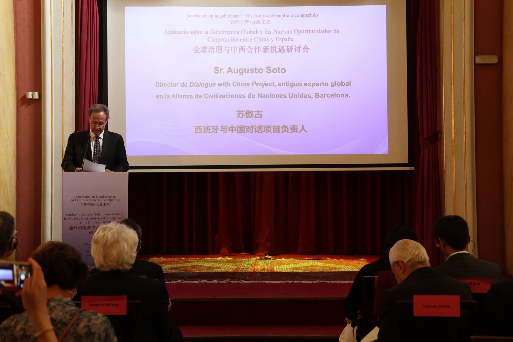 Tras este largo contexto, que me parece necesario para exponerles lo que viene a continuación, les voy a contar que la revista China Today organizó un evento de alto nivel en Barcelona, en el magnífico Reial Cercle Artístic de Barcelona, bajo el epígrafe “Seminario sobre la Gobernanza Global y las Nuevas Oportunidades de Cooperación entre China y España (Innovación en la gobernanza – Un futuro compartido)”, en el que diferentes ponentes aportamos nuestra visión. Los conferenciantes fuimos Zhao Lijun (Directora del Centro para Europa y África de la Oficina de Publicaciones en Lenguas Extranjeras de China), Pedro Nueno (Presidente honorario europeo y fundador de CEIBS), Hu Aimin (Cónsul General adjunto de China en Barcelona), María Callejón (Exsecretaria general de PYMES del Ministerio de Industria de España y exvicerrectora de la Universitat de Barcelona, Augusto Soto (Profesor en Esade y Director del proyecto «Diálogo con China»), Jacinto Soler Matutes (Director de Relaciones Internacionales de PIMEC), Ricardo Ferrer (Presidente de la Cámara Hispano-Hongkonesa de Barcelona), Pablo Pareja Alcarraz (Profesor de la Universitat Pompeu Fabra (UPF), investigador Serra Húnter y asistente del rector), Lluc Vidal (Director del Grado en Relaciones Internacionales de la Universitat Oberta de Catalunya (UOC), experto en Asia-Pacífico), Vicente Ortun (Profesor titular de la Facultat d´Economia i Empresa de la UPF), Carlos Santana (Profesor del IE Business School y exresponsable en España del tren China-Europa Yiwu-Madrid), Joaquín Beltrán (Profesor de la Universitat Autònoma de Barcelona), María José Masnou (Profesora de la Universitat de Lleida (UdL), directora de la Cátedra UNESCO sobre Ciudades Intermedias y diseñadora del Col·legi d´Arquitectes de Catalunya (COAC) en Barcelona, Carles Brasó (Profesor de la UOC) y un servidor, Jorge Aguadero, en calidad de articulista de opinión sobre política internacional del medio chino Global Times. Hobo, también una exposición temática de libros relacionados con el seminario.