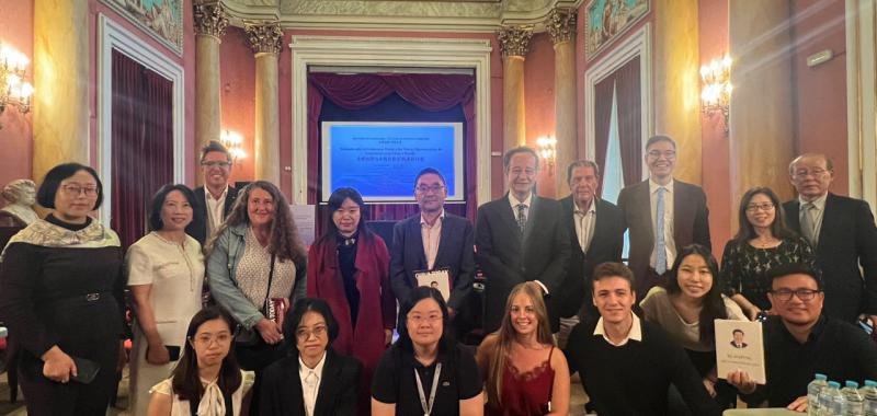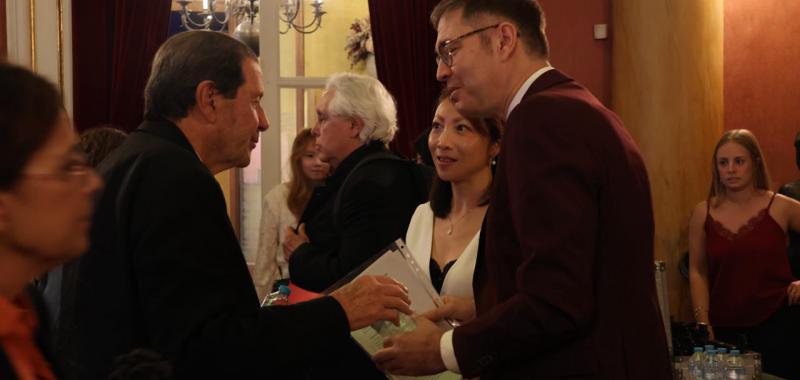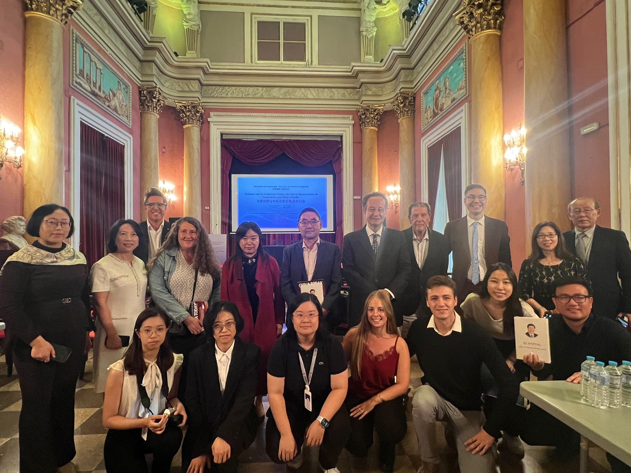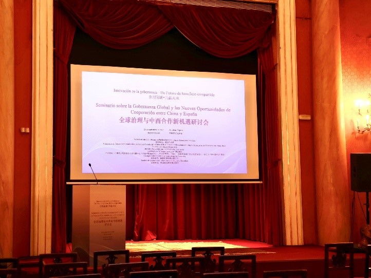 El escenario del Reial Cercle Artístic de Barcelona se vistió de gala para acoger el “Seminario sobre la Gobernanza Global y las Nuevas Oportunidades de Cooperación entre China y España (Innovación en la gobernanza – Un futuro compartido)”. (Foto: Linkchina Translations & Consulting)