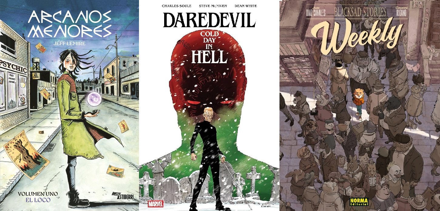En un mes especialmente generoso para los amantes del noveno arte, diciembre abre sus páginas como un mazo de tarot mezclado con nieve neoyorquina y callejones llenos de tinta. Desde el realismo mágico y el misterio que Jeff Lemire destila en Arcanos menores, hasta el regreso más gélido del viejo Matt Murdock en la nueva odisea de Daredevil, pasando por el debut vocacional —y torpemente entrañable— del joven Dustin en Weekly, las librerías se llenan de historias que hablan de destinos cambiantes, héroes que ya no lo son tanto y adolescentes que buscan su sitio entre viñetas. Tres propuestas distintas, un mismo hechizo: recordarnos que, cuando el cómic está en buenas manos, siempre queda algo por descubrir al pasar la página.