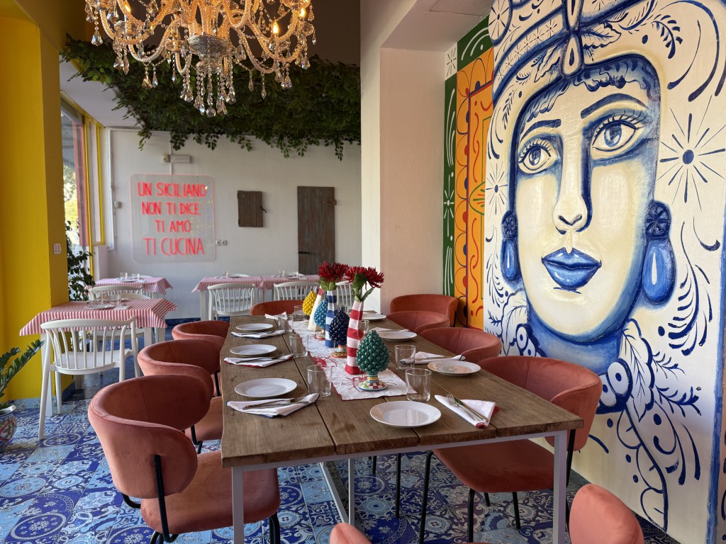 Por fin, un restaurante siciliano auténtico —auténtico de verdad— aterriza en Castelldefels. Y lo hace con ruido, color y emoción: como Sicilia misma. En la avenida Constitución nº 89 se ha abierto hace solo unos días una puerta insólita que no conduce sinmplemente al interior de una trattoria sino a Sicilia misma. allí donde el olor a pistacho tostado se mezcla con el rumor de los mercados y la memoria de las madres que cocinan sin receta, solo con instinto, de geberación en generación. Así empieza cualquier menú en el novísimo restaurante Bedda Madre: como un viaje sin billete de vuelta a la isla más exuberante del Mediterráneo. Bedda Madre, el nuevo restaurante del Grupo Dolcevita, es un espacio donde las recetas ancestrales, el arte callejero y la memoria familiar se entrelazan para fabricar experiencias que van más allá de la que gastronomía: es una inmersión completa en la isla donde cocinar es otra forma de decir “te quiero”.