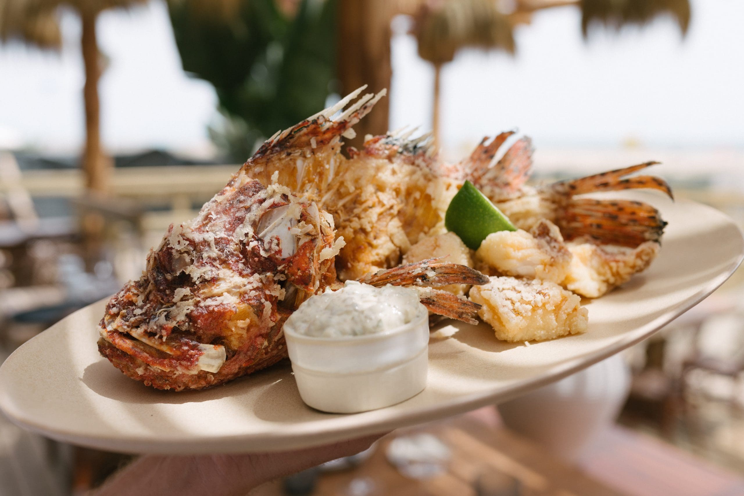 - El ambiente versátil, capaz de funcionar tanto como restaurante de día como beach club nocturno.
