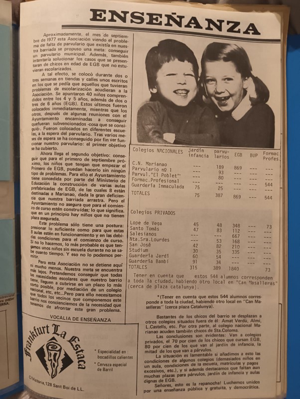 Durante los años 1978 y 1979, los vecinos instaban a las amas de casa a ‘exigir sus derechos’ porque el precio del pan era excesivo. En uno de los folletos que la entidad repartía se informa sobre la existencia en Sant Boi de la Asociación de Amas de Casa. Y sigue el texto: “está integrado por 40 miembros, muchos del barrio de Marianao”. El uso del género femenino se les atragantaba también a algunos durante aquellos años. Una asociación de amas de casa estaba integrado, no integradada, por 40 miembros, no por 40 mujeres.