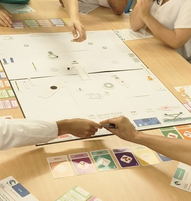 Un juego de quirófano. Pero no se trata de un juego de mesa cualquiera: es el simulador de una intervención quirúrgica en aneurismas de aorta abdominal con rotura, donde cada carta, ficha y rol cuenta para salvar vidas. Cirujanos, anestesiólogos y celadores, trocados en tahúres, entrenan antes de entrar en el quirófano sustituyendo el bisturí por las cartas. Y el ensayo de coordinación entre players se convierte así en la mejor jugada para que el paciente llegue lo mejor posible a la meta. En este juego, la estrategia no es ganar puntos y acabar el primero, sino reducir la mortalidad y habilitar al equipo para que cada movimiento en el tablero se traduzca en un éxito real y milimétrico en la mesa del quirófano.