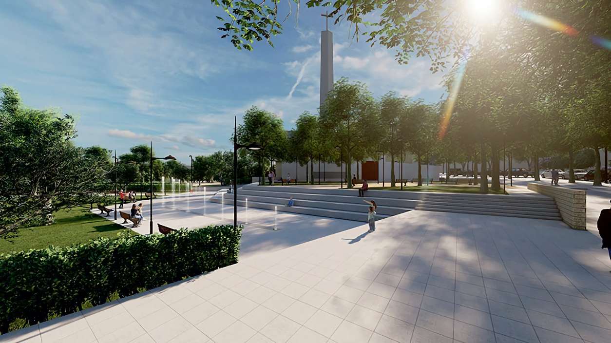 El proyecto contempla la instalación de una fuente ornamental transitable, que contará con 14 surtidores verticales. Estos surtidores se integrarán a ras del suelo y podrán alcanzar alturas de hasta 2 metros, ofreciendo un espectáculo visual dinámico.