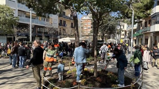L'Hospitalet avanza hacia una ciudad más verde con una nueva plantación comunitaria en la plaza Espanyola