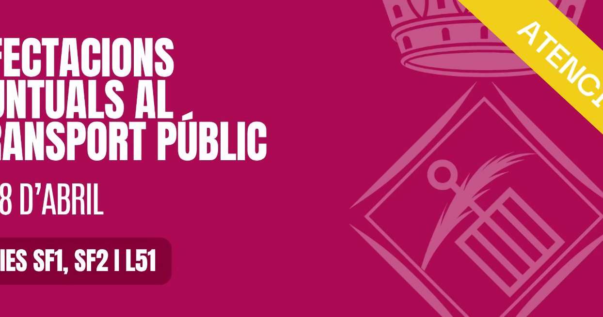 El martes 7 de abril, las líneas SF1 y L51 experimentarán cambios en su recorrido en la Rambla Marquesa de Castellbell, justo antes del cruce con el callejón Girona, en dirección ascendente. Durante este periodo, la línea SF1 será desviada por el calle Josep Ricart, mientras que la línea L51 tomará el camino por el calle General Manso si el vehículo articulado no puede girar entre los calles Josep Ricart y Girona.