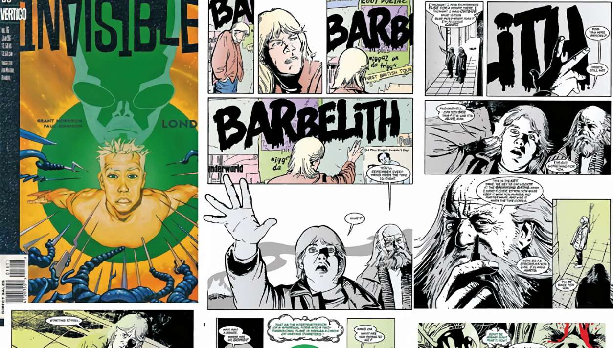 Tal vez el título más apreciado de su producción en este sentido sea Los Invisibles (1994-2000). En sus páginas, el autor escocés retrata las peripecias de una suerte de organización secreta mágico-anarquista que combate la opresión ejercida por un gobierno de tiranos alienígenas. Ya así, solamente esbozando el argumento de este tebeo, puede intuirse que Morrison buscaba agitar políticamente las conciencias de sus lectores, plantearles que la resistencia es una posibilidad frente al autoritarismo o la violencia económica, social… Pero no quiso limitarse a provocar esa reacción en la realidad confiando solamente en sus capacidades narrativas. Grant Morrison quiso que Los Invisibles fuese un artefacto mágico arrojado a un mercado de difusión masiva.