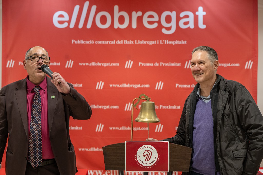 El GM Miguel Illescas, 8 veces campeón de España, ha hecho el tradicional toque de campana en la Ronda 6 del VI El Llobregat Open Chess Tournament (FOTO: David Llada)